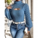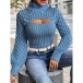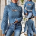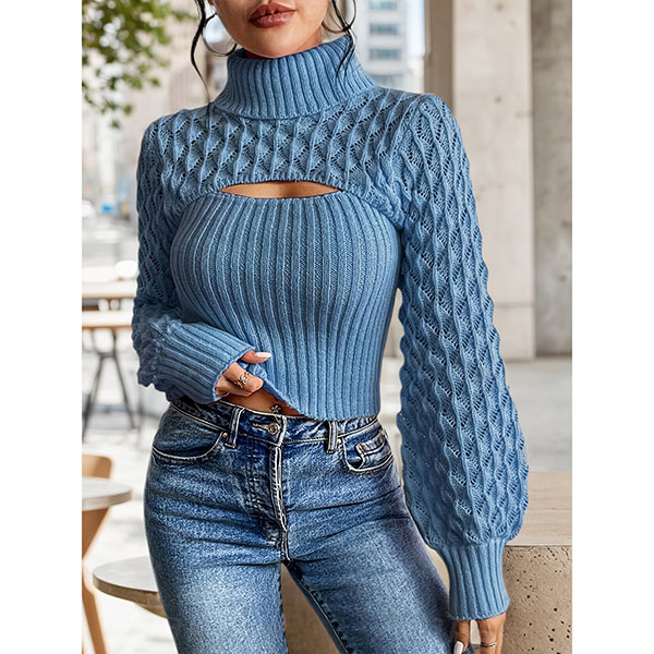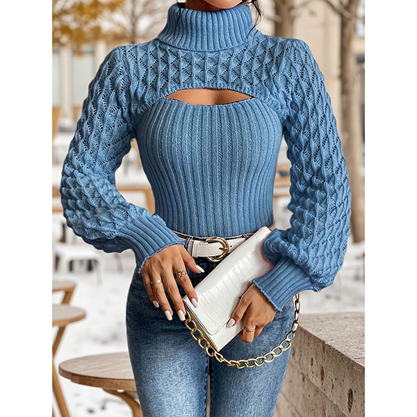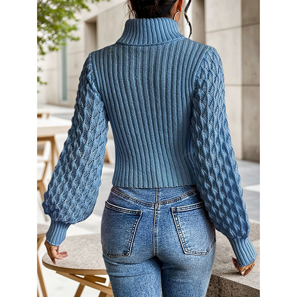 Stickad polotröja med ballongärmar och hålstickat mönster