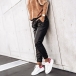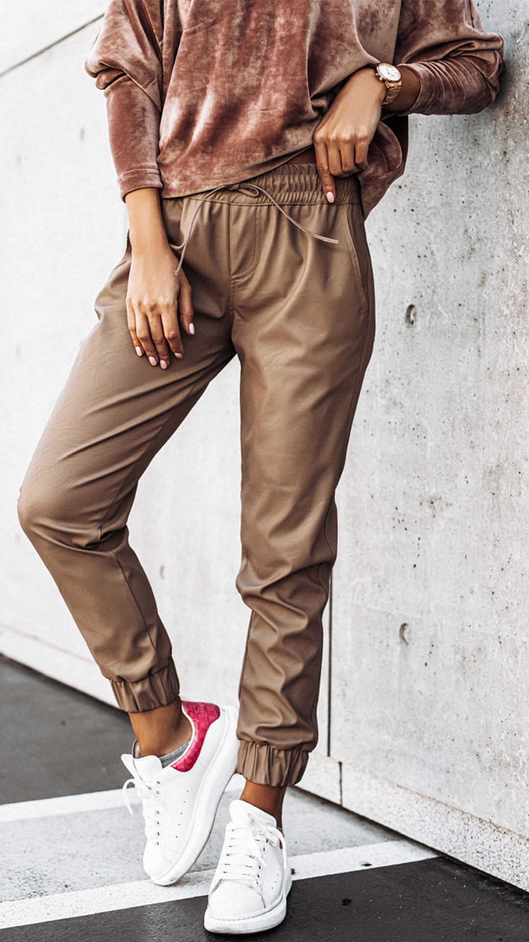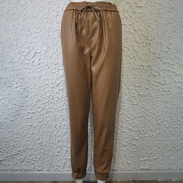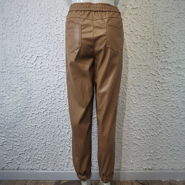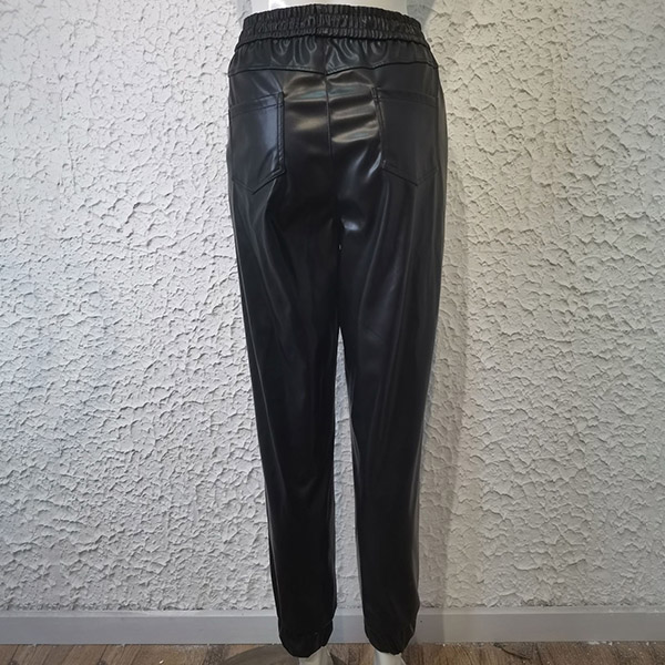 Hip-hop stil Elastiska midja PU-läderbyxor