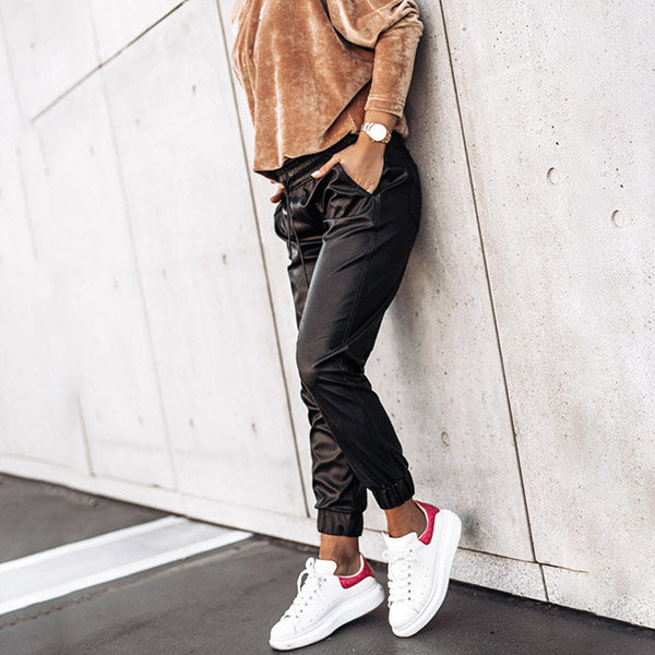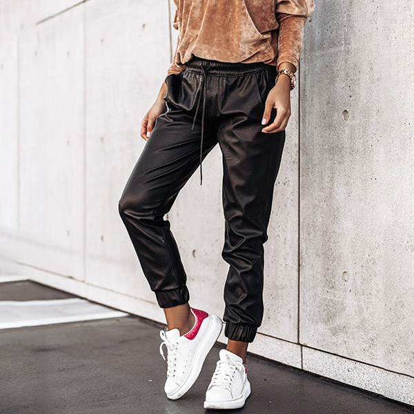 Du kan enkelt uppnå en hiphop-streetstil med dessa PU-läderbyxor. De kommer i en klassisk, men elegant svart nyans. Den elastiska midjan och den mjuka tygdesignen ger dig en bekväm dag. Du kan matcha dem med t-shirts, tröjor eller crop tops för att skapa olika modestilar.