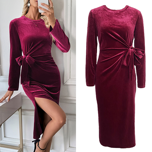 Maxiklänning i sammet med slits – rak design och smickrande passform vid höfterna