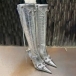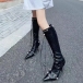 Knähöga stövlar med stilettklackar och spetsig tå och dragkedja på sidan