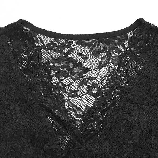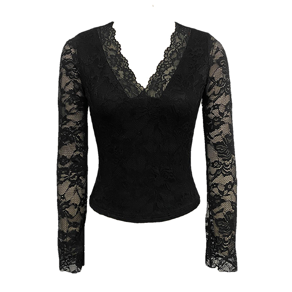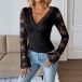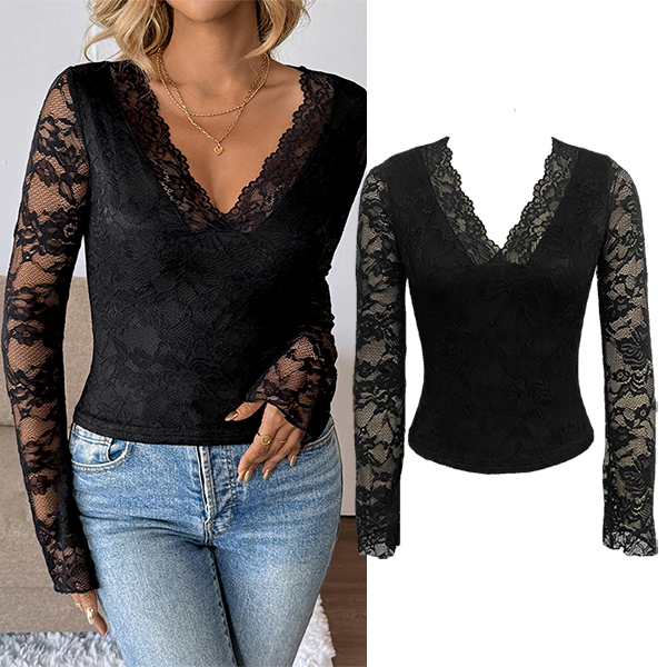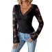 Långärmad t-shirt med V-ringning och spetsdetaljer
