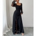 L-EU42=US12-14=UK/AU14-16: Byst: 90 cm (35,43");Midja: 74 cm (29,13");ÄrM: 67,5 cm (26,57");Längd: 127 cm (50");