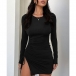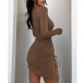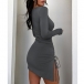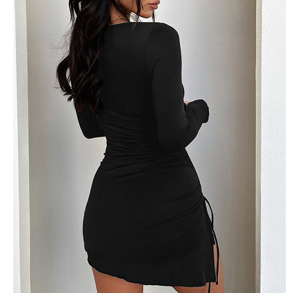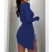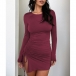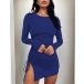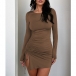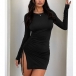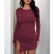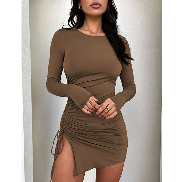 Klänning med lång ärm, rund halsringning och justerbar snörning i midjan