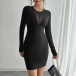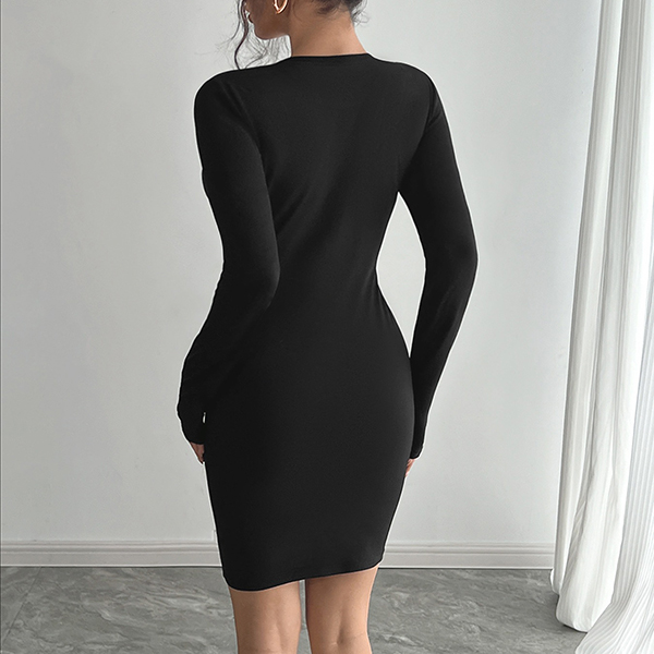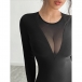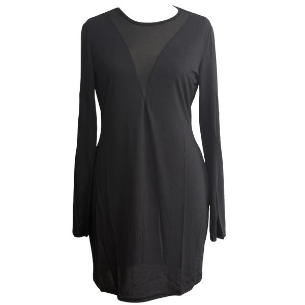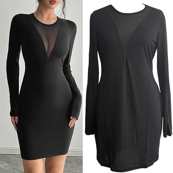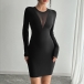 Enfärgad långärmad klänning med slimmat snitt och meshpanel vid bysten