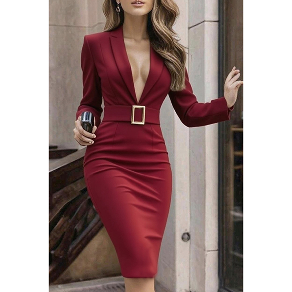 Kostyminspirerad långärmad klänning med djup V-ringning