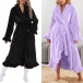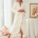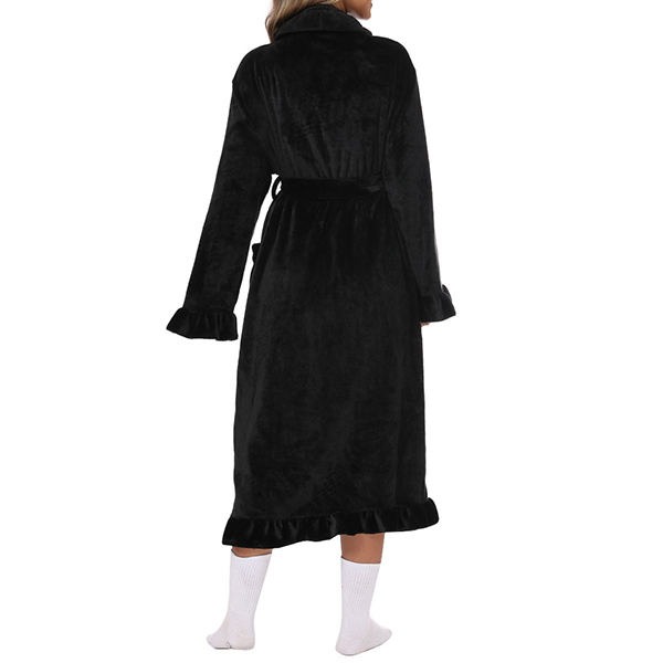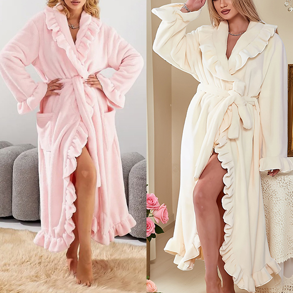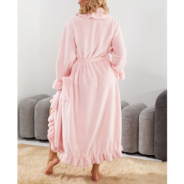 Bekväm varm enfärgad pyjamas med volanger och slag, långärmad och knytbar morgonrock