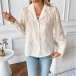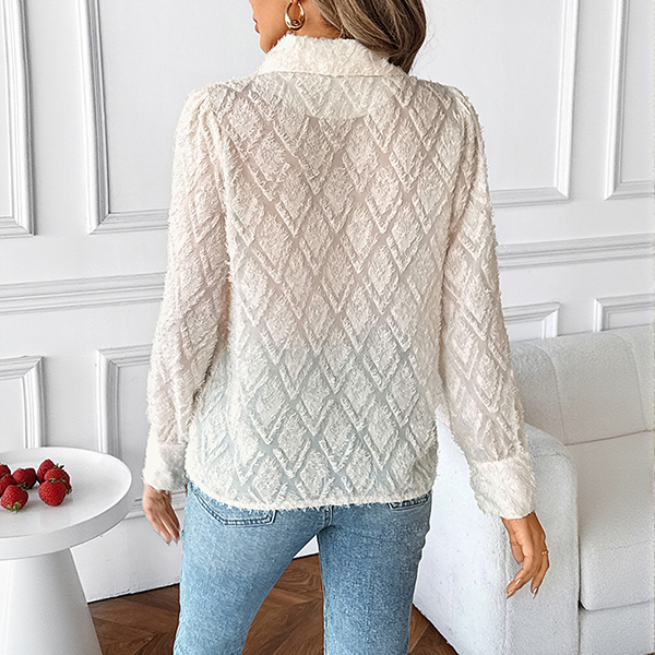 Damblus med långärmad kant och knappar framtill, texturerad fuzzy
