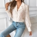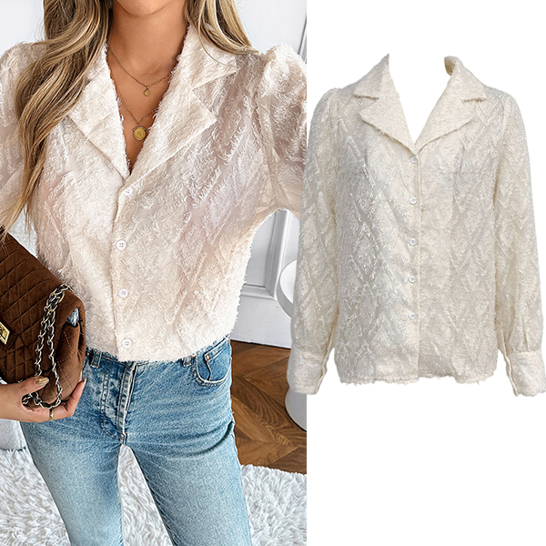 Denna texturerade fuzzyblus är ett snyggt och mysigt plagg som kombinerar en klassisk silhuett med ett texturerat tyg för en modern och elegant look. Kombinationen av kant och knappar framtill och det texturerade tyget gör denna blus till ett mångsidigt och snyggt alternativ för olika tillfällen. Kombinera den med skräddarsydda byxor eller en kjol för en sofistikerad och elegant look, eller bär den med jeans för en mer avslappnad och elegant ensemble.