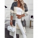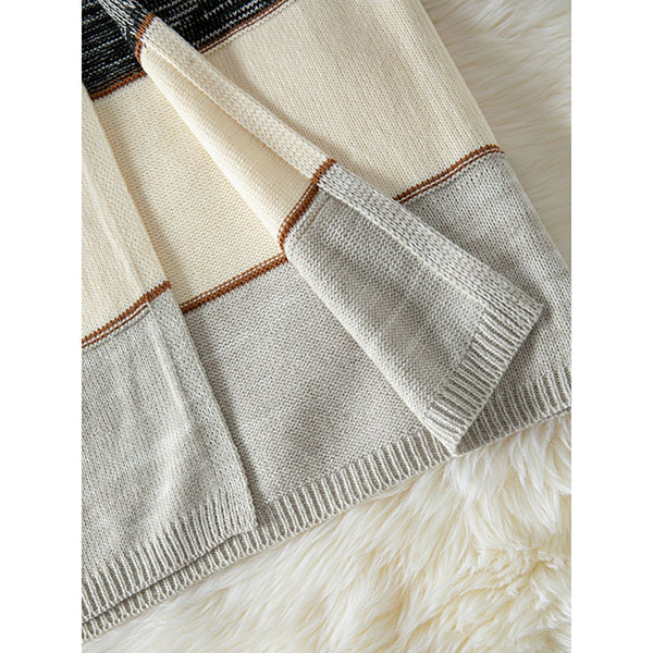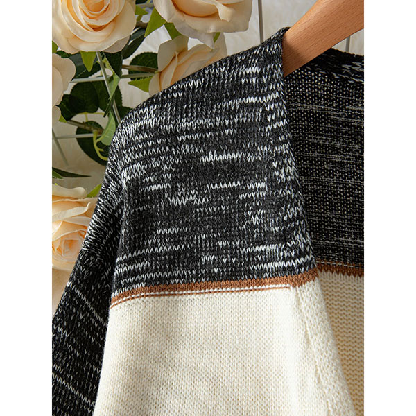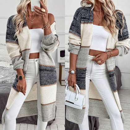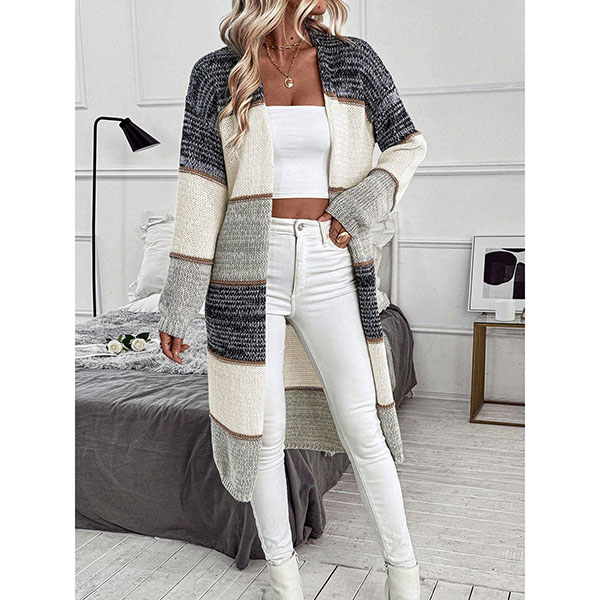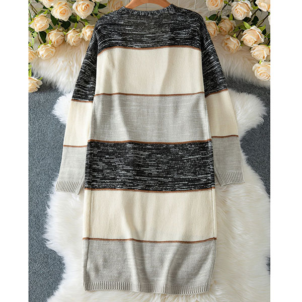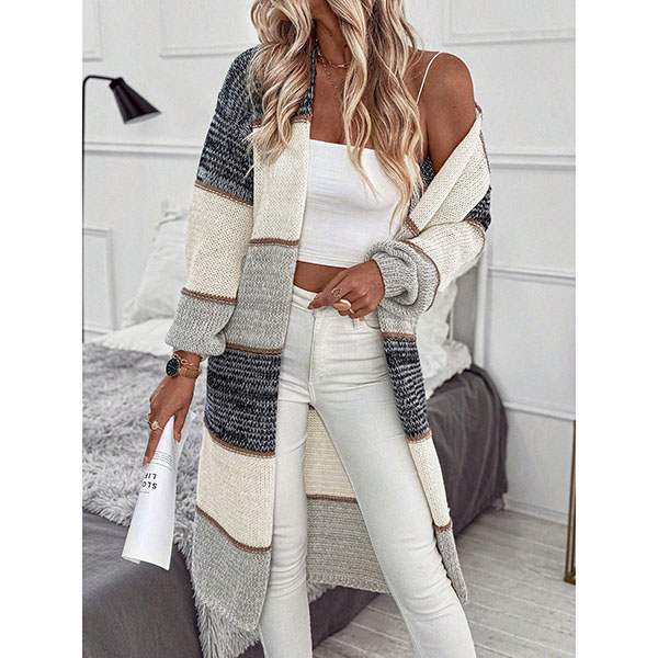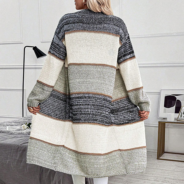 Randig färgblockkofta i lång modell med V-ringning