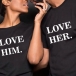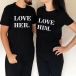 LOVE HIM, LOVE HER-Couple Shirt-Black Casual Printed Couple T-shirt