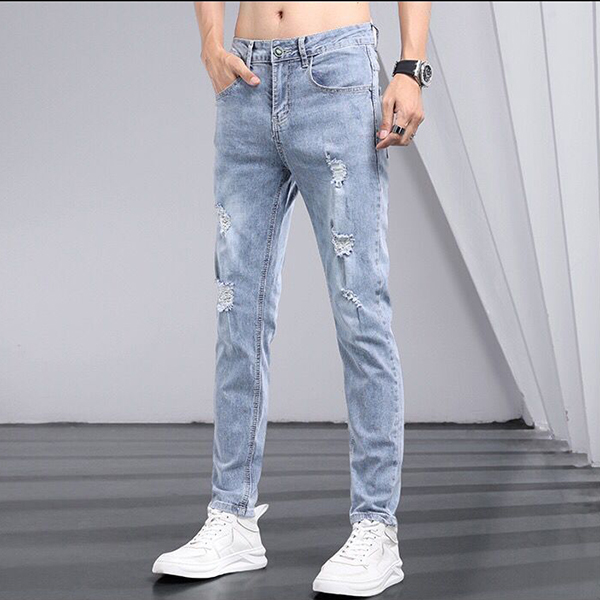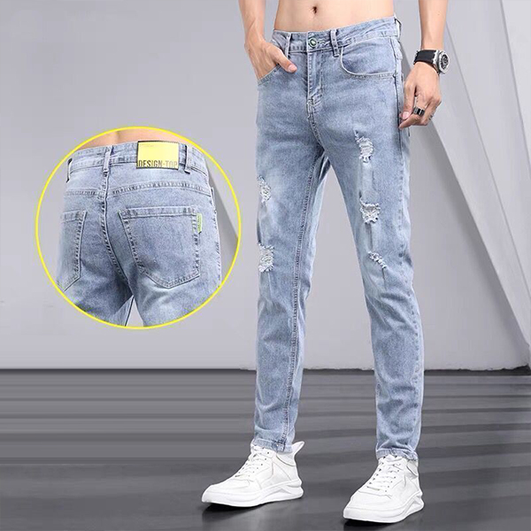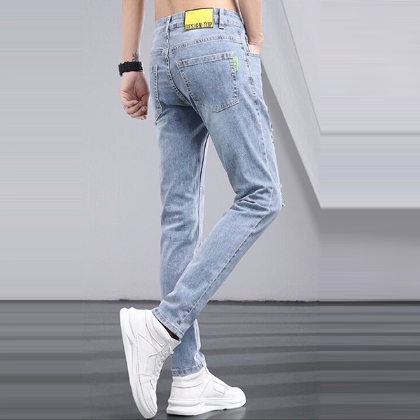 Slim-Fit Rippade Jeans för män: Ljusfärgade Stretch Denim Vardagsbyxor