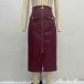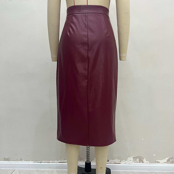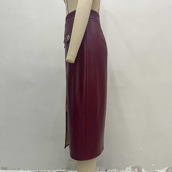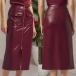 Moderiktig hög midja med dragkedja framtill, slitsar och fickor i konstläder i PU