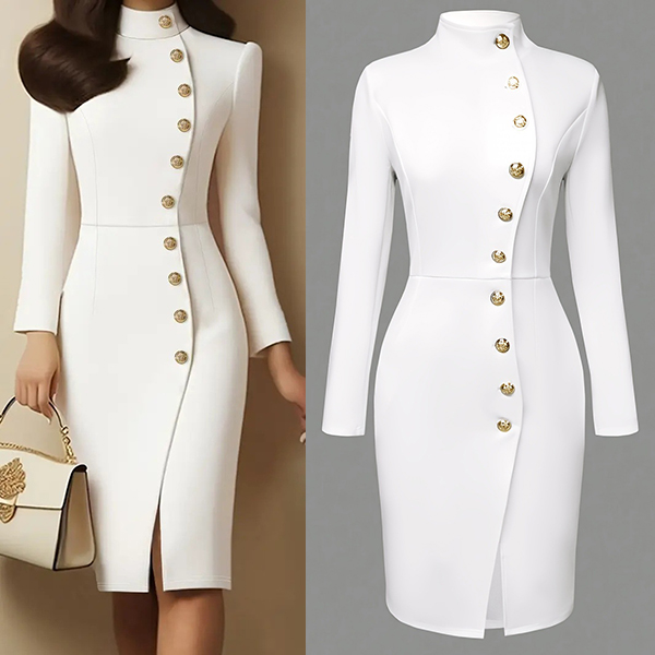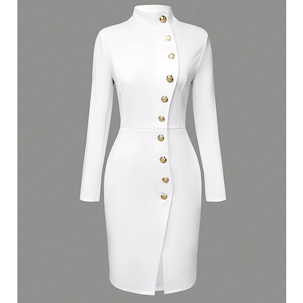 Sommarminiklänning med ståkrage och dekorativa metallknappar
