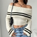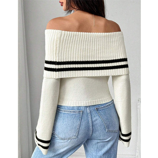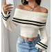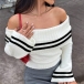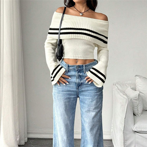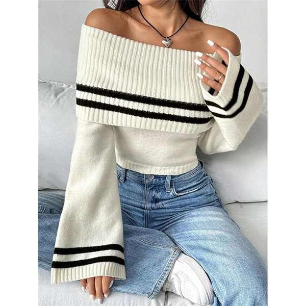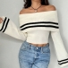 Modern Off-the-Shoulder Långärmad Kort Ribbad Skjorta