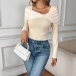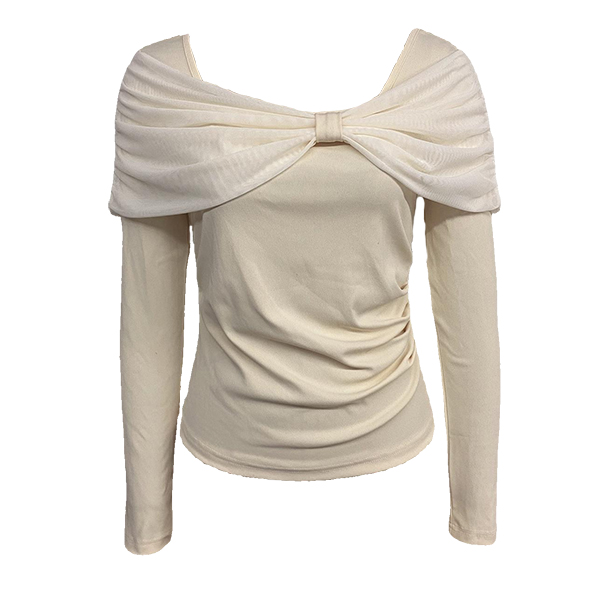 Moderiktig knutskjorta med fyrkantig halsringning och långärmad design