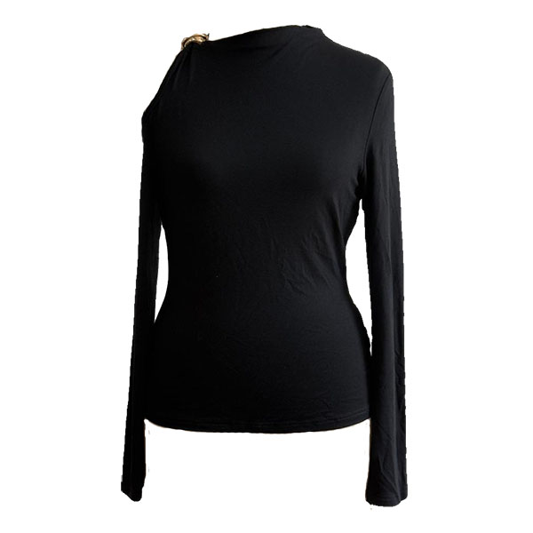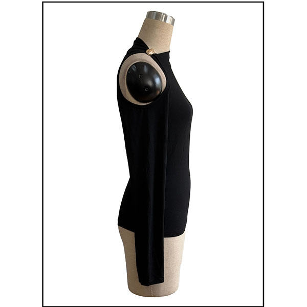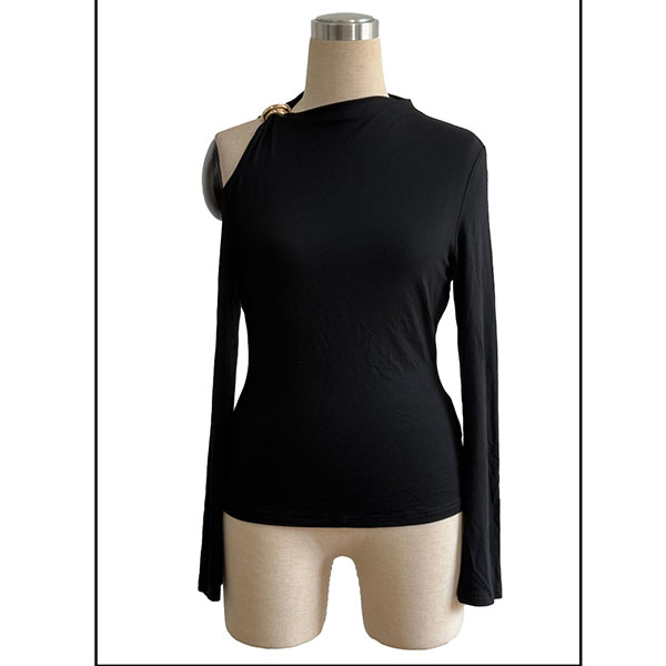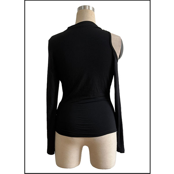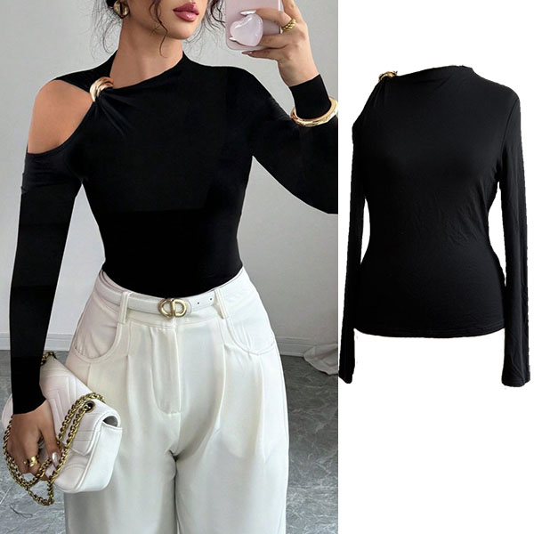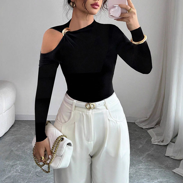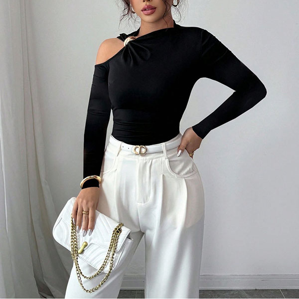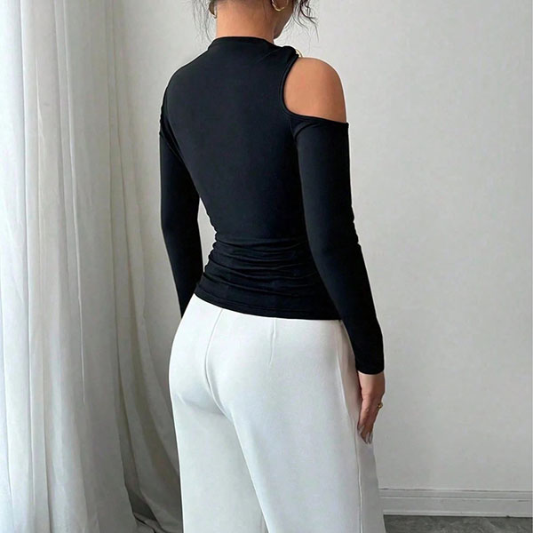 Moderiktig oregelbunden halsringning med öppna axlar och långärmad skjorta