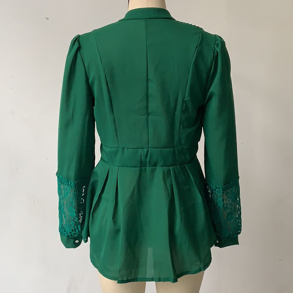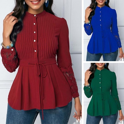 Compared with your other classic shirts,this one can bring you a different fashion styles. Solid color style,finished with long sleeve and stand collar design,chic yet cozy. Then what makes this piece look so attractive? It owes to the lace spliced and pleated details. When you wanna try a different style shirts,then you can make your eyes focused on this one.