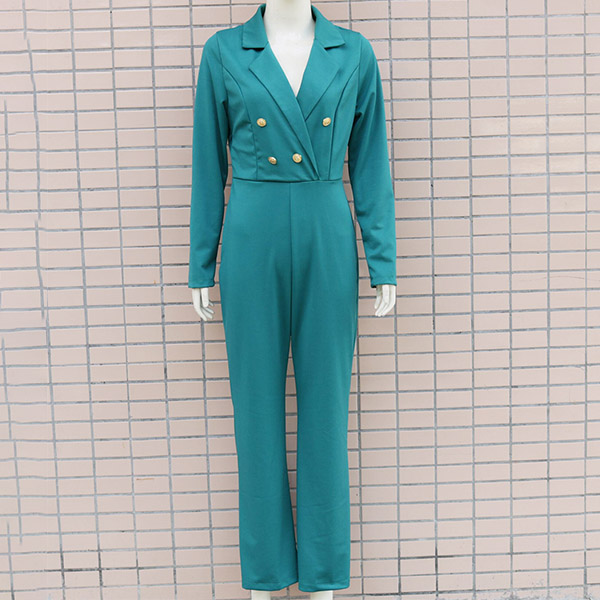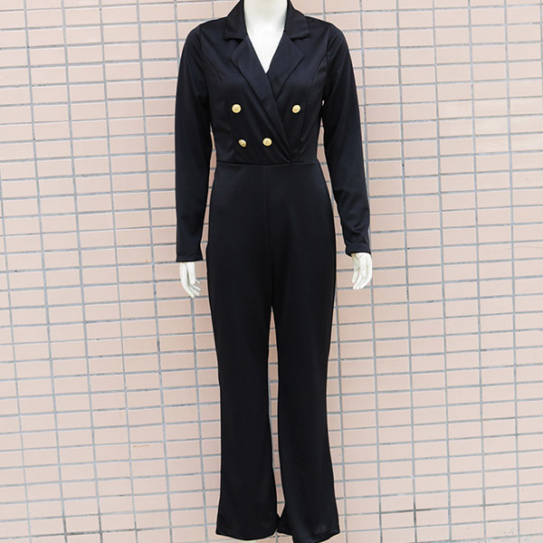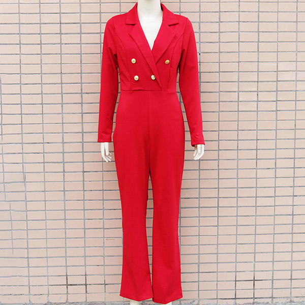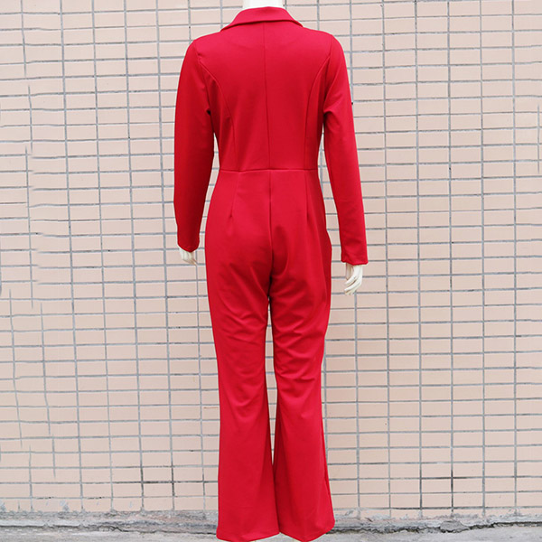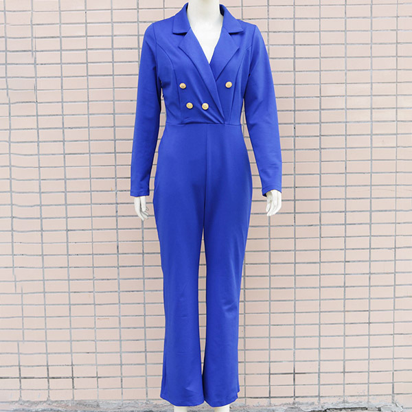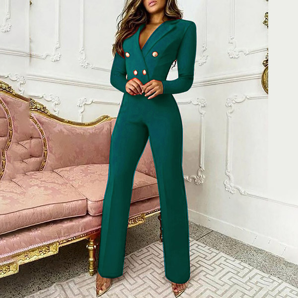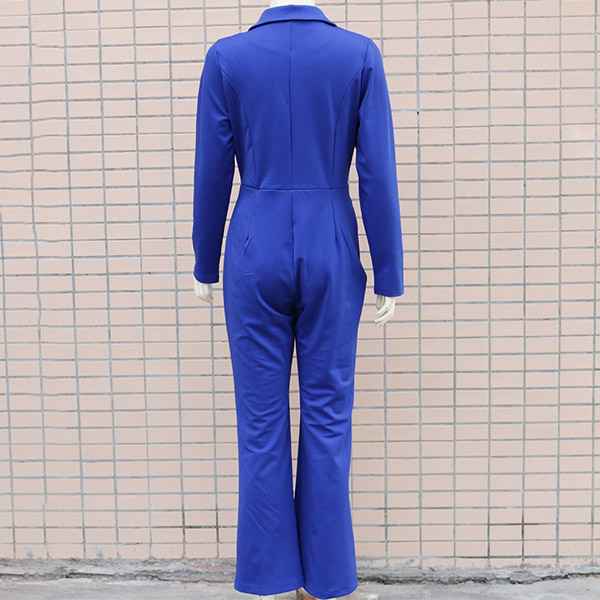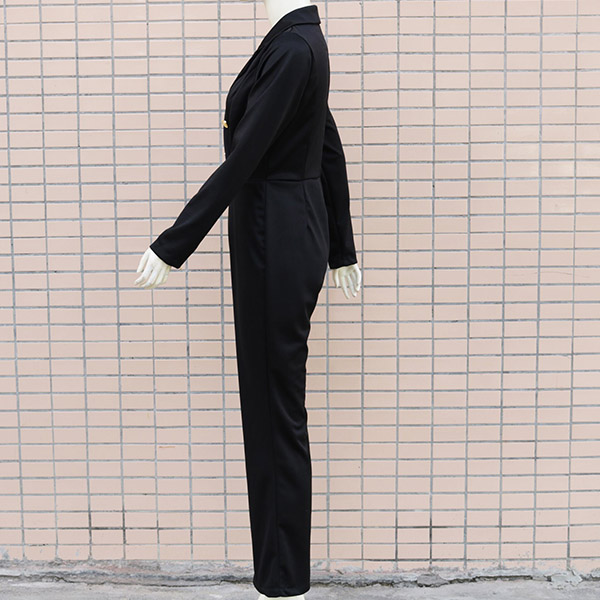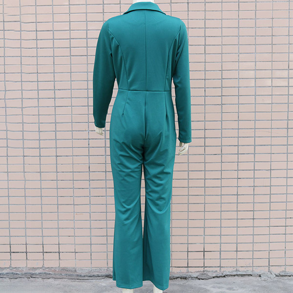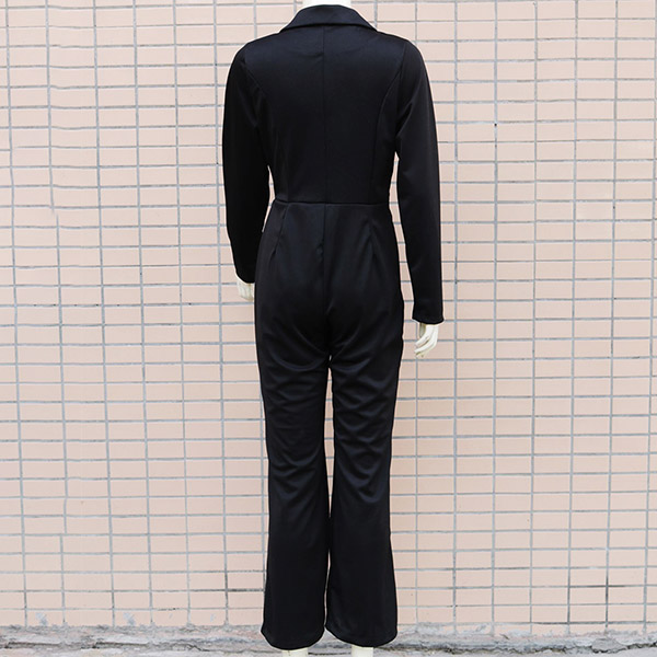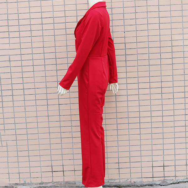 För en delikat, självsäker och charmig arbetslook kan du bara prova den här jumpsuiten. Enfärgad stil, avslutad med en långärmad, hackad kavaj, hög midja och en slim-fit siluett. Denna jumpsuit kommer inte bara framhäva din smala figur, utan även utstråla din stil och charm.