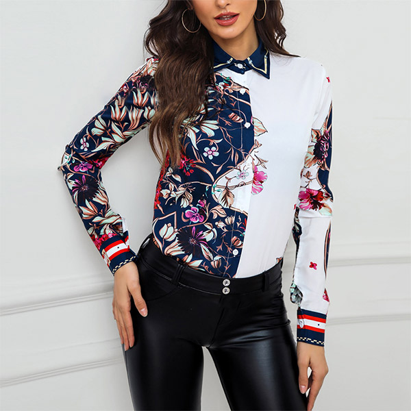 For these office ladies,a delicate and stylish shirt is an essential. So how about this piece? Its eye-catching printed details can help you draw more attention,while the long sleeve,POLO collar and single-breasted design maintain the classic design style. Simply matching with your favourite bottom to achieve for a charming working look.