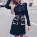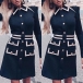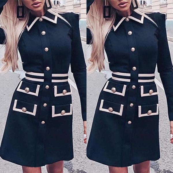 När du står inför klädpanik under dina hektiska arbetsdagar finns det en enkel lösning - den här fantastiska klänningen. Med sin kontrastfärgade stil, långa ärmar, klassiska POLO-krage och stilrena enkelknäppta design är den både elegant och delikat. Dess rena siluett och höga midjedesign kommer att framhäva din smala figur på ett enastående sätt. För att skapa en förtrollande look, matcha den med dina favoritskor och du är redo att imponera.