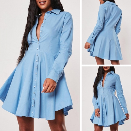 For a delicate,elegant and charming working look,you can have a try this shirt dress. Solid color style,finished with long sleeve,POLO collar and single-breasted design,this shirt dress knows how to express your beautiful and charming side. Your busy workdays can be much easier if you have this dress in your team.