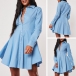 OL Style Long Sleeve POLO Collar Single-breasted Shirt Dress