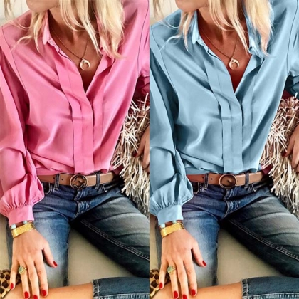 For a delicate,stylish and charming workday look,you can have a try this shirt. It is finished with solid color,long sleeve,POLO collar and a clean silhouette,this piece bears a simple,classic design style,but it can be matched with different style bottoms to offer you different fashion styles.