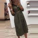 OL Style Long Sleeve POLO Collar Solid Color Shirt Dress