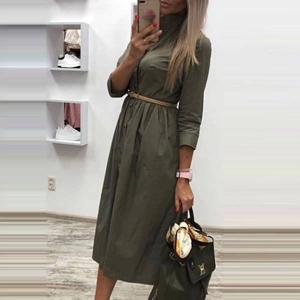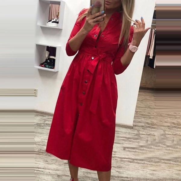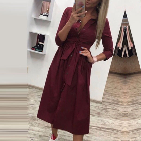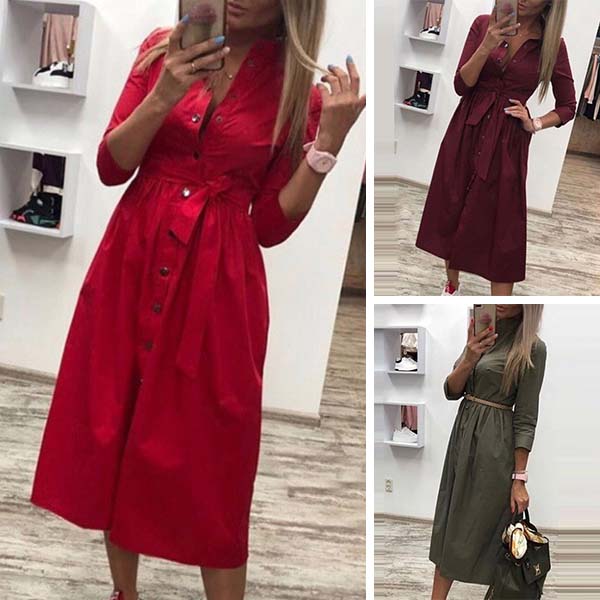 If you're yearning for an instant fashion style,then look no further than this shirt dress. Solid color style,finished with long sleeve,POLO collar and single-breasted design,classic,cozy yet stylish. No matter for your workdays or weekend out,this versatile dress is a good choice!