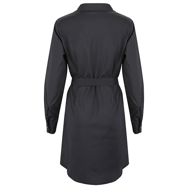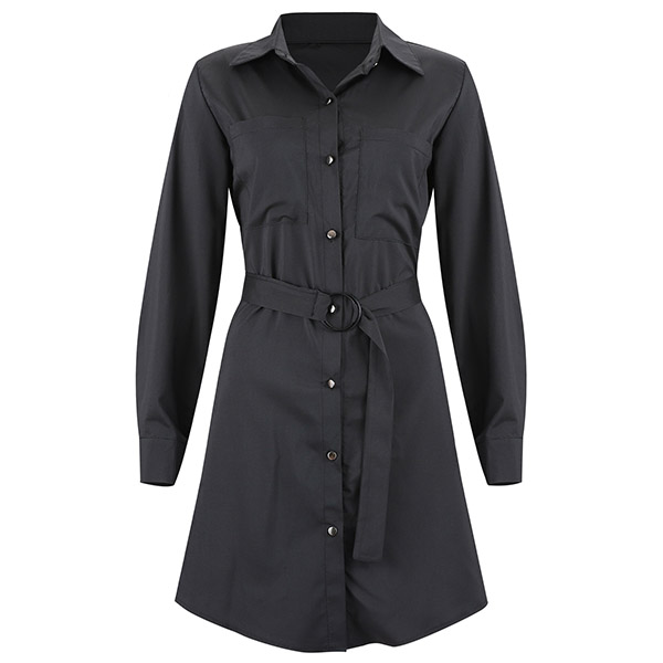 No matter for your workdays or weekend out,this versatile shirt dress can be a wise choice. Boasts a classic yet flattering black tone,finished with long sleeve and POLO collar design,delicate yet stylish. The waist strap design can easily enhance its charm. Like it? Then why not have a try?