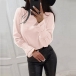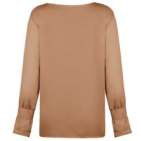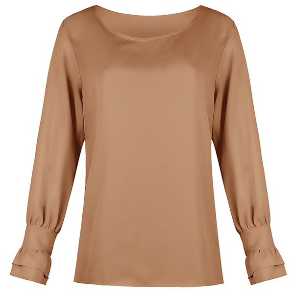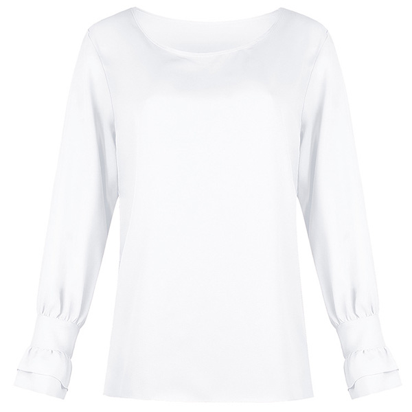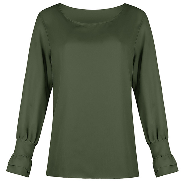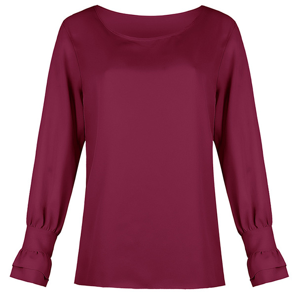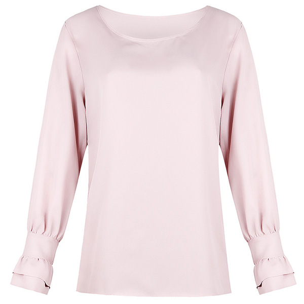 OL Style Long Sleeve Round Neck Solid Color Blouse