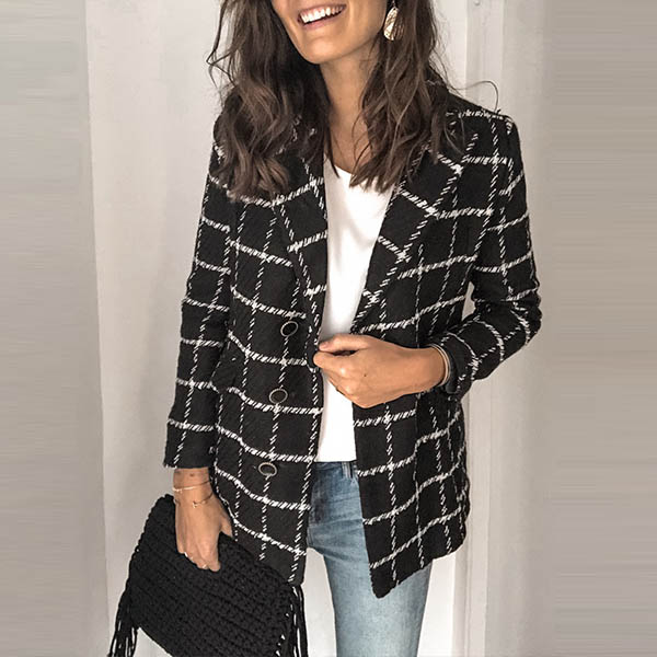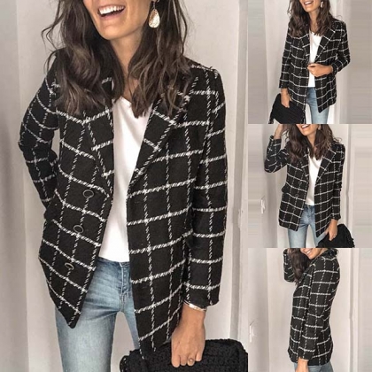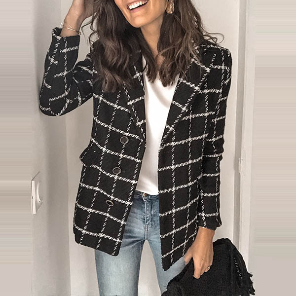 OL Style Long Sleeve Single-breasted Plaid Blalzer