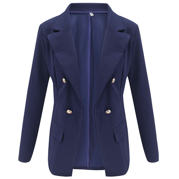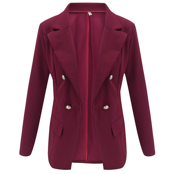 Specially tailored for today's modern working ladies,this delicate and stylish blazer is an absolute must-have item for them. Features a solid color,the notched lapel and double-breasted design make this piece look more delicate. It not only can keep you warm,but also can offer you different matching styles. Trust me,this piece would be your wise investment!