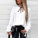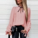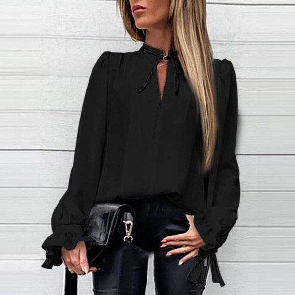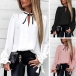 For a stylish and delicate working look,you can have a try this blouse! The lace-up design at the collar part makes this piece look more attractive. No matter matching with your shorts,skirts or jeans,you can look fashionable and delicate!
