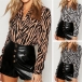 OL Style Långärmad V-ringad Skjorta med Zebramönster och Tryck