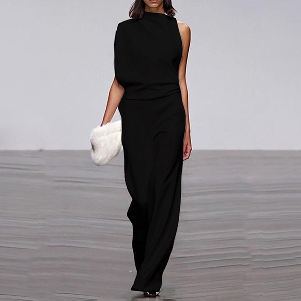 OL Style One-shoulder High Waist Solid Color Jumpsuit