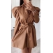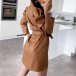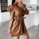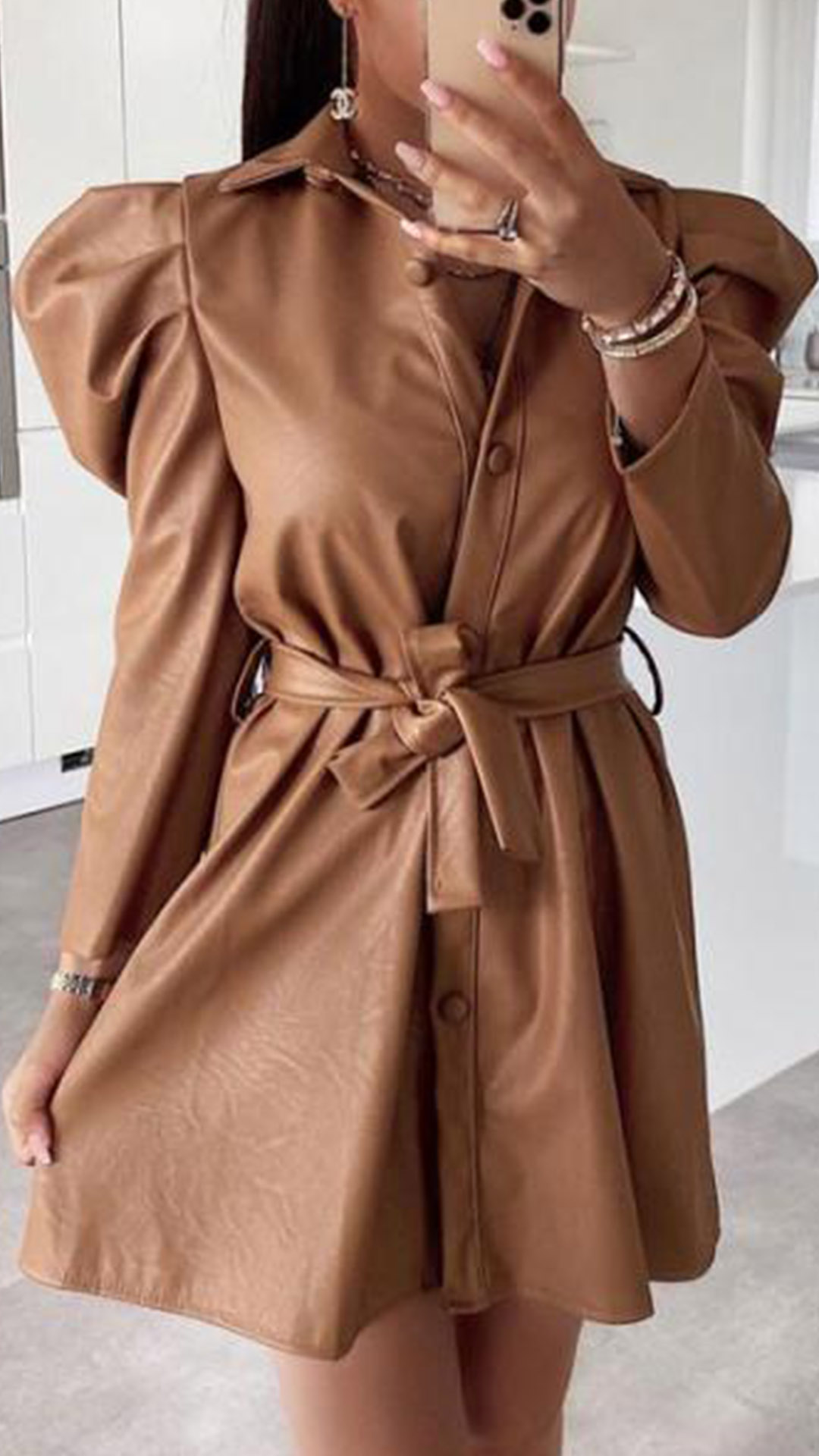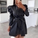 OL Style Puff Sleeve POLO Collar PU Leather Dress