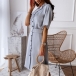 OL Style Short Sleeve Single-breasted Solid Color Shirt Dress