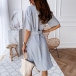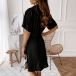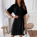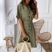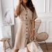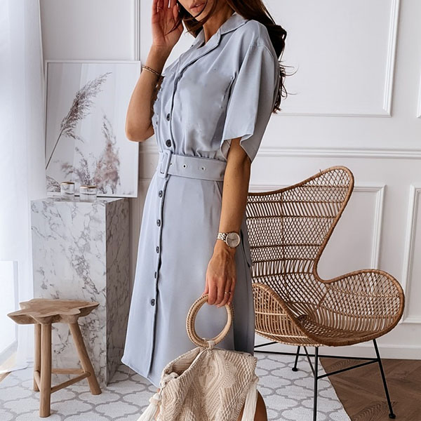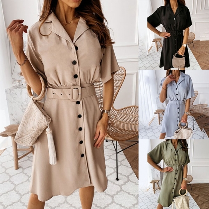 OL Style Short Sleeve Single-breasted Solid Color Shirt Dress