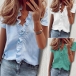 För dina hektiska arbetsdagar kan du lita på att den här blusen ger dig en snygg och delikat arbetslook. Den är enfärgad med korta ärmar, v-ringning och en volangdesign. Denna underbara pjäs kan inte bara erbjuda dig komfort, utan också möjligheten att matcha den på olika sätt.