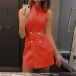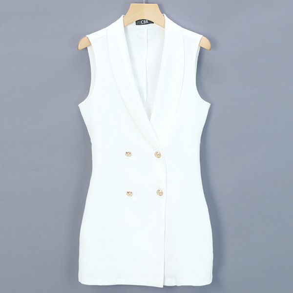 This dress that exudes modern and elegant vibes is perfect fit for these office ladies. Solid color style,finished with sleeveless,lapel,double-breasted and a fit silhouette,this dress can portray your charm and femininity. Like this style? Then add it to your wardrobe!