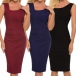 OL Style Sleeveless Round Neck Solid Color Slim Fit Dress