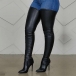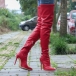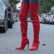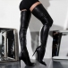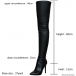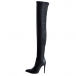 Höga stövlar med spetsig tå och stilettklack över knäet