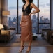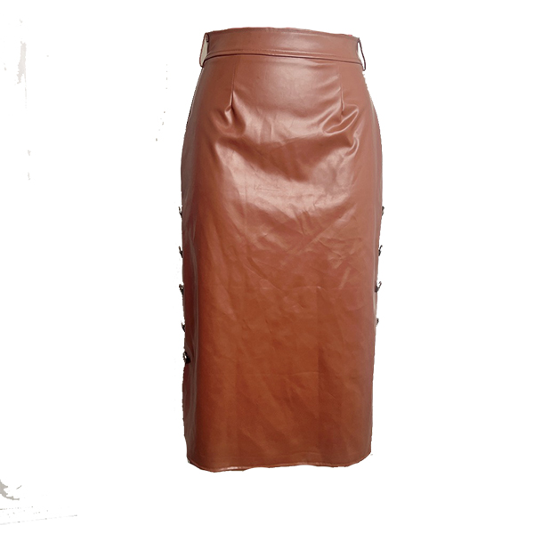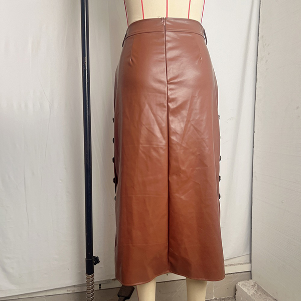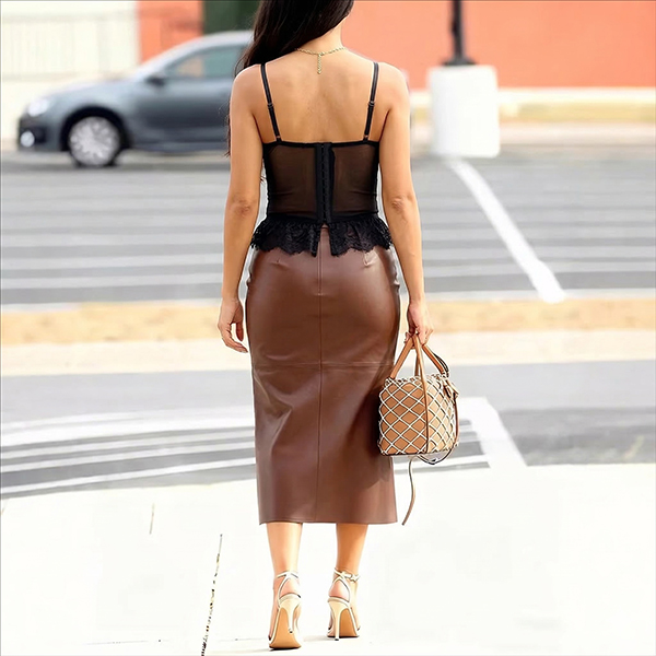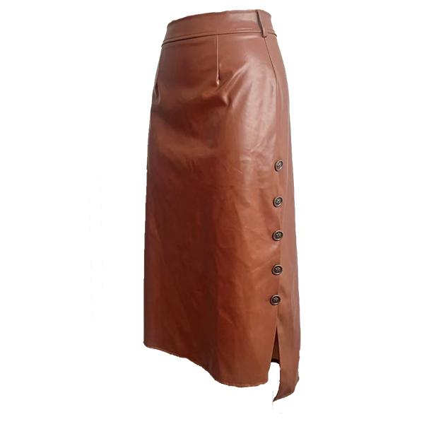 Pennkjol i PU-läder med smal passform, knälång och höftnära, med sidoslits