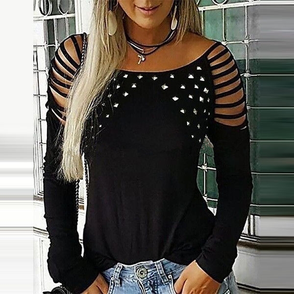 Punk style long sleeve rivets t shirtStorlek : SHöjd : 5ft 2"CmVikt : 8 stoneKgIs It Fit : It FitVery nice fit and looks great on.