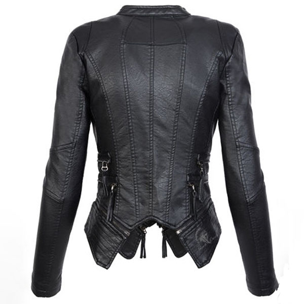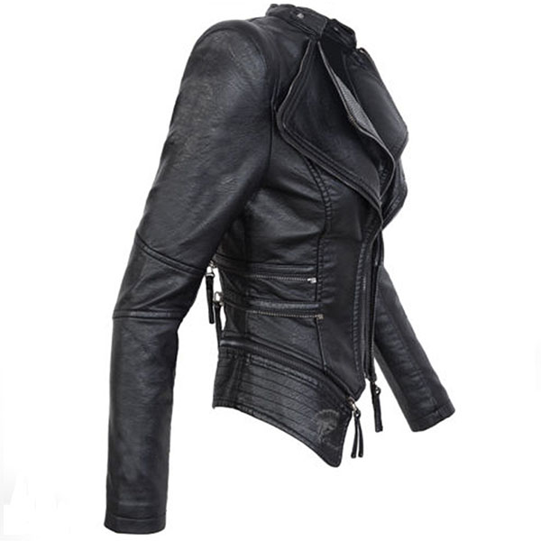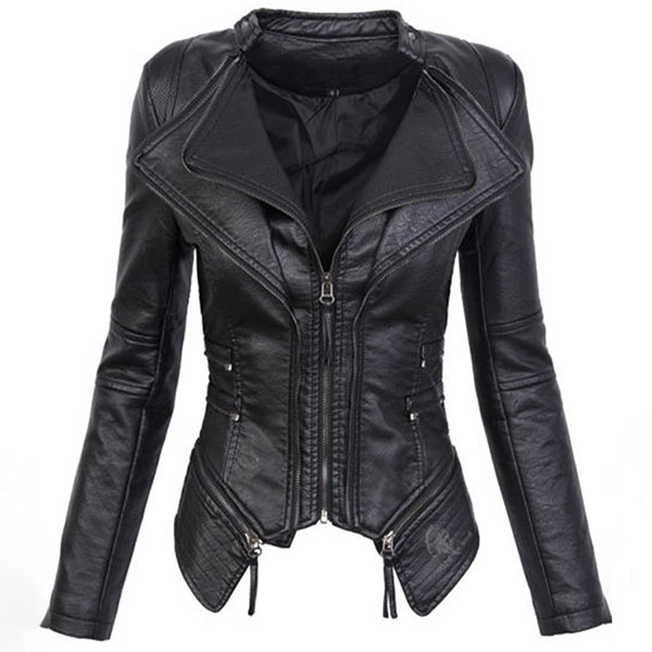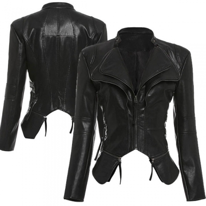 When the days get a little cold,you can just slip into this PU leather jacket to have a cool and fashionable look. The irregular hem and zipper details make this piece look so chic and unique,while the fit silhouette design can showcase your figure. You can match it with your t-shirts or dresses to achieve for a charming dress up.