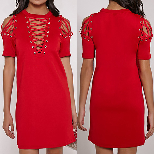 with short sleeve and round neck design,classic and stylish. And its lace-up design makes this dress