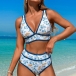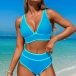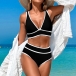 Tvådelad baddräkt dam – Retro chic sportstil: kontrastkantad crop-top & midjekontrollbyxa