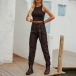 You can have a cool and fashionable street look when you dress yourself up with this retro style pants. It boasts a solid color,with high waist design,which can showcase your slender legs. Matching with your crop tops would be a good idea.